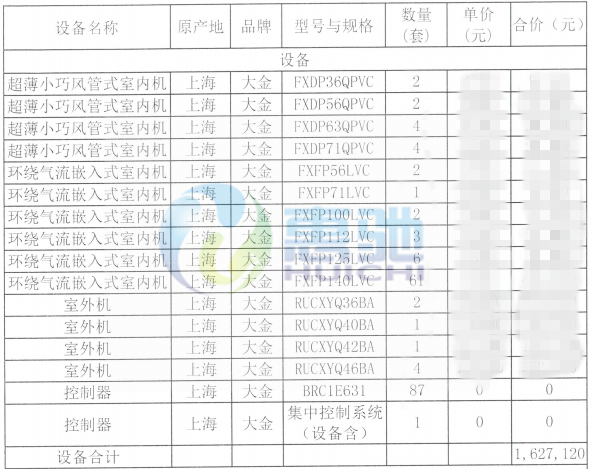 項目內容:大金大金VRV-系列中央空調安裝調試